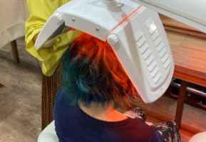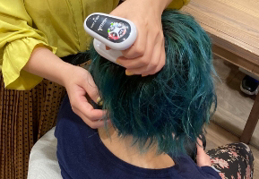 大学でも論文がでている発毛効果が期待できる近赤外線のLEDを当てていきます。