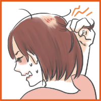 頭髪の一部を指でつまんで抜くため、脱毛箇所が不規則な形をしています。